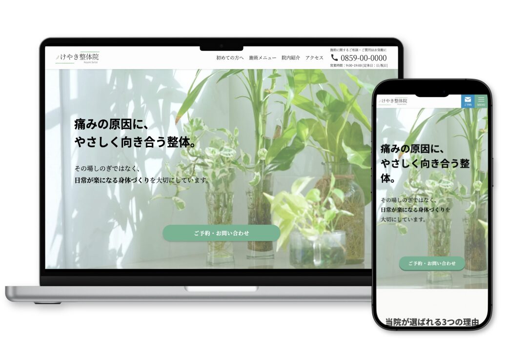 | 概要 | 地域密着型の整体院を想定し、「初めての方でも安心して来院できること」を重視して制作したWebサイト(トップページ + 下層5ページ)です。 スマートフォンからの閲覧を前提に、施術内容・料金・アクセス情報が迷わず確認できる構成を意識しました。 落ち着きと清潔感のあるデザインで、信頼感を与えることを目的としています。 【工夫したポイント】 ☑️ 配色・デザイン グリーンを基調に、安心感・清潔感・自然さを意識した配色にしています。 ☑️ 導線設計 「施術内容 → 料金 → アクセス」の流れが自然につながるよう、トップページ内の情報配置を調整しました。 ☑️ スマホ最適化 ボタンサイズや行間を広めに取り、年齢層が高めでも操作しやすい設計にしています。 ☑️ WordPress構成 お知らせや営業時間変更を、管理画面から簡単に更新できる構成にしました。 |